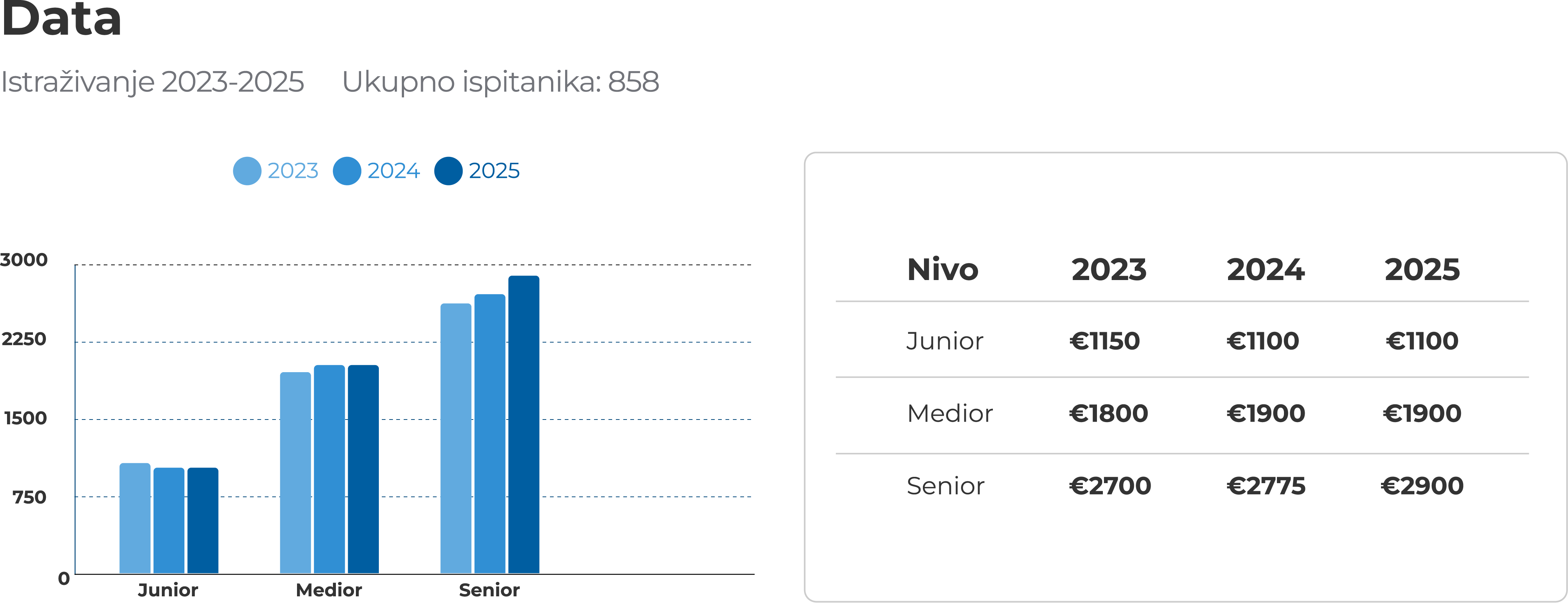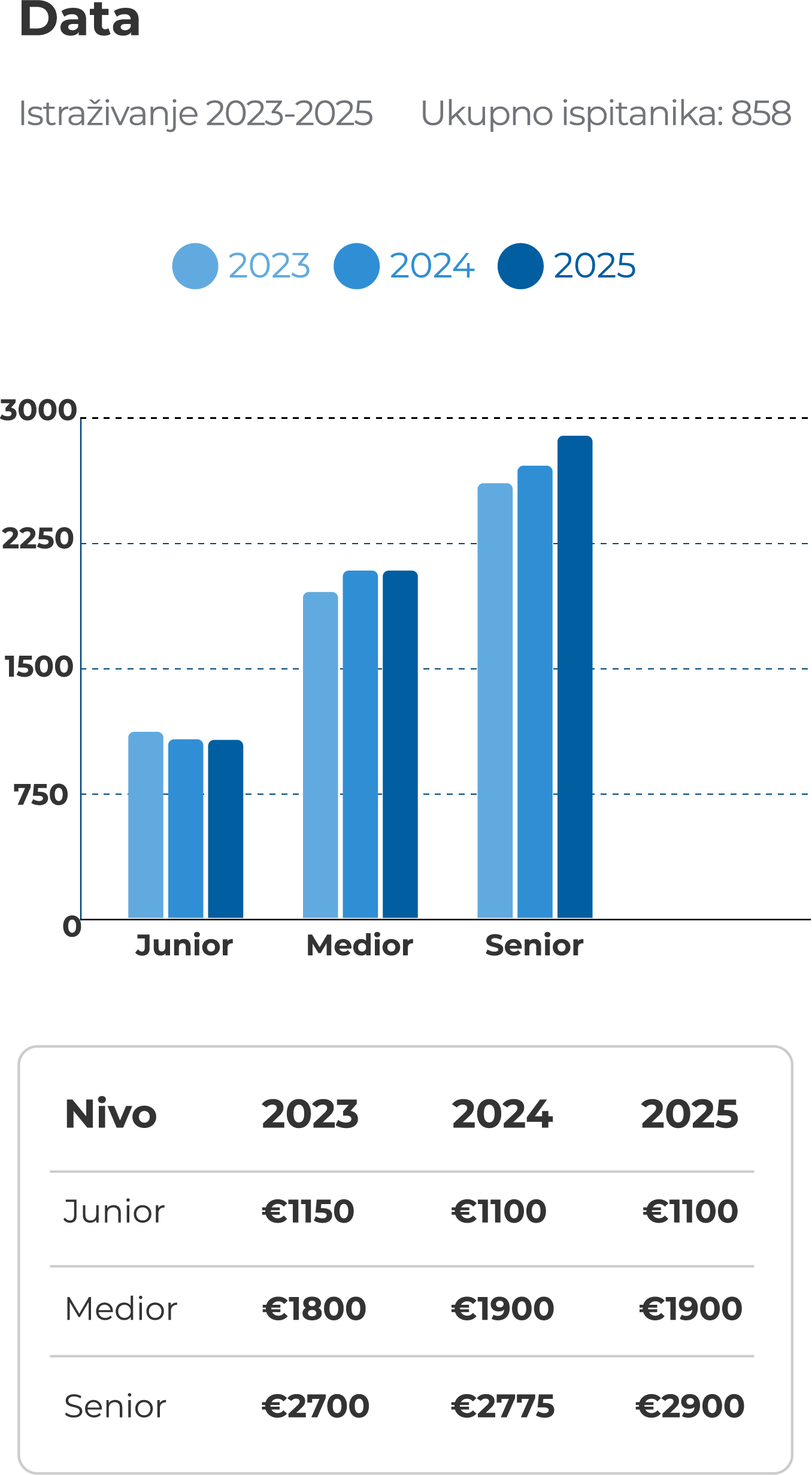 U poslednje dve godine, 62% ispitanika je dobilo povećanje plate, 35% je zadržalo istu platu, dok je 3% doživelo smanjenje. Među onima sa povišicama, najveći broj je imao povećanje do 10%.